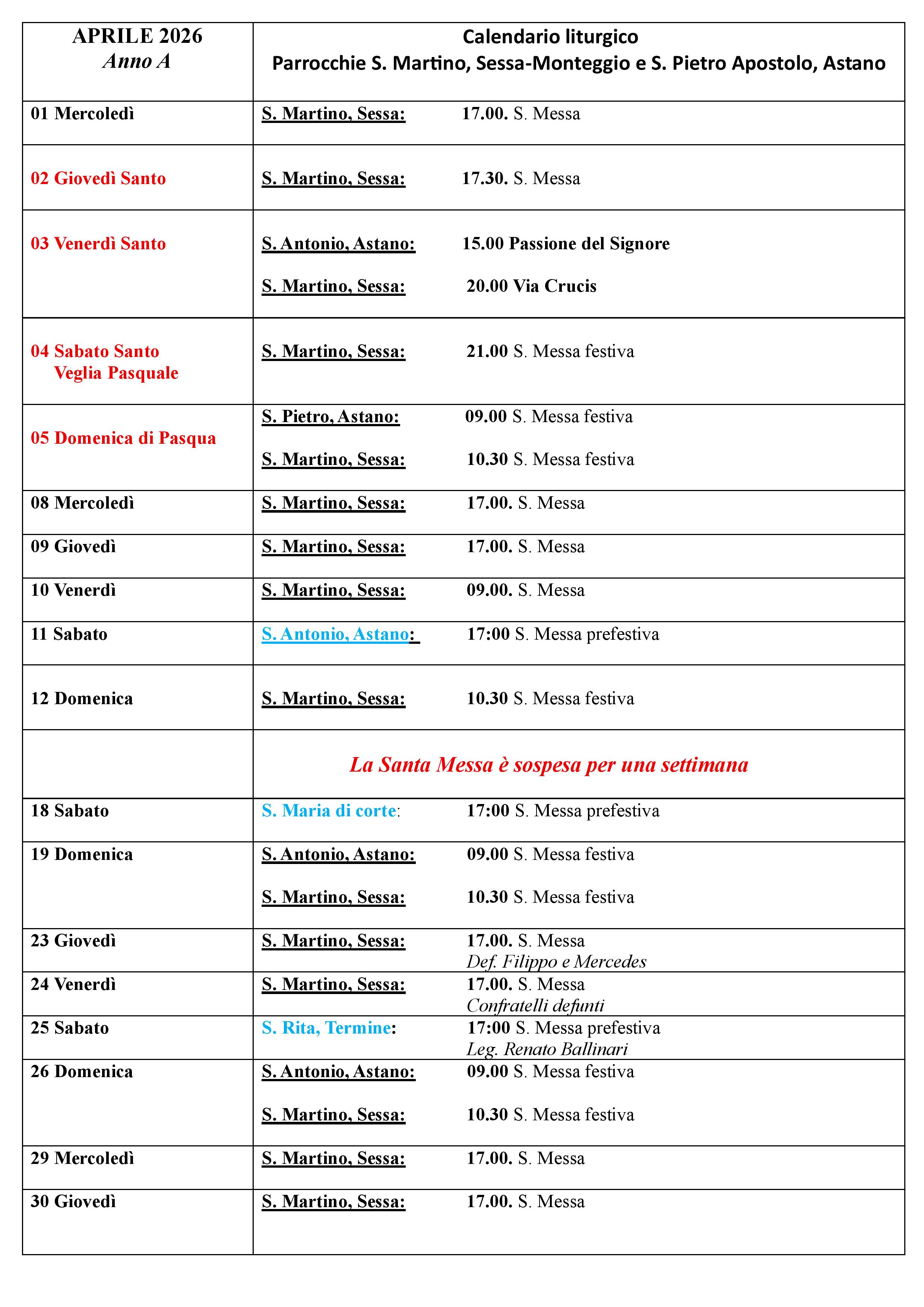 Parrocchia S. Martino Vescovo - Sessa e Monteggio Parrocchia S. Pietro Apostolo - Astano
